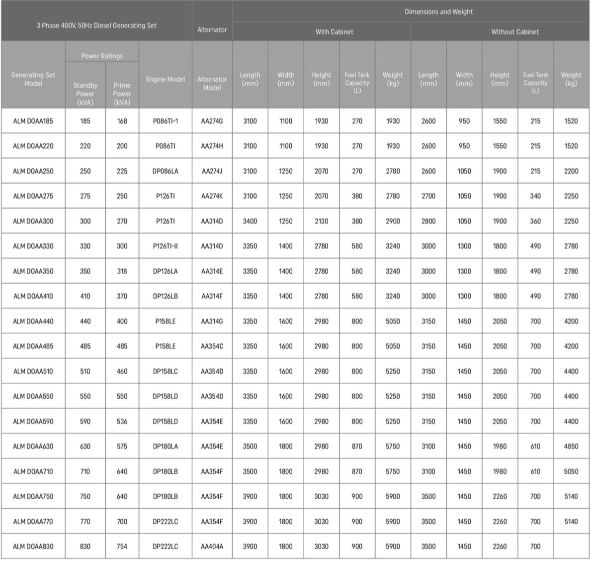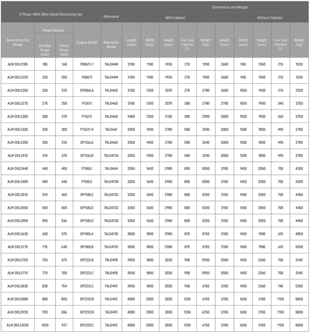 - Standard 50 Hz, 400/230 V output voltage