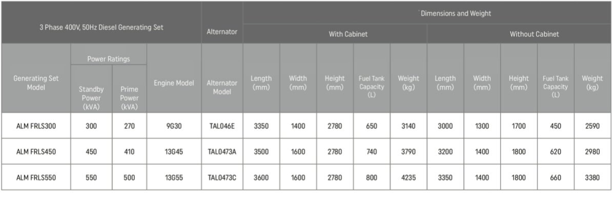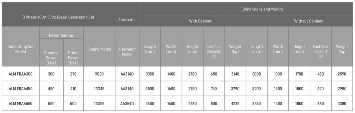 - Standard 50 Hz, 400/230 V output voltage