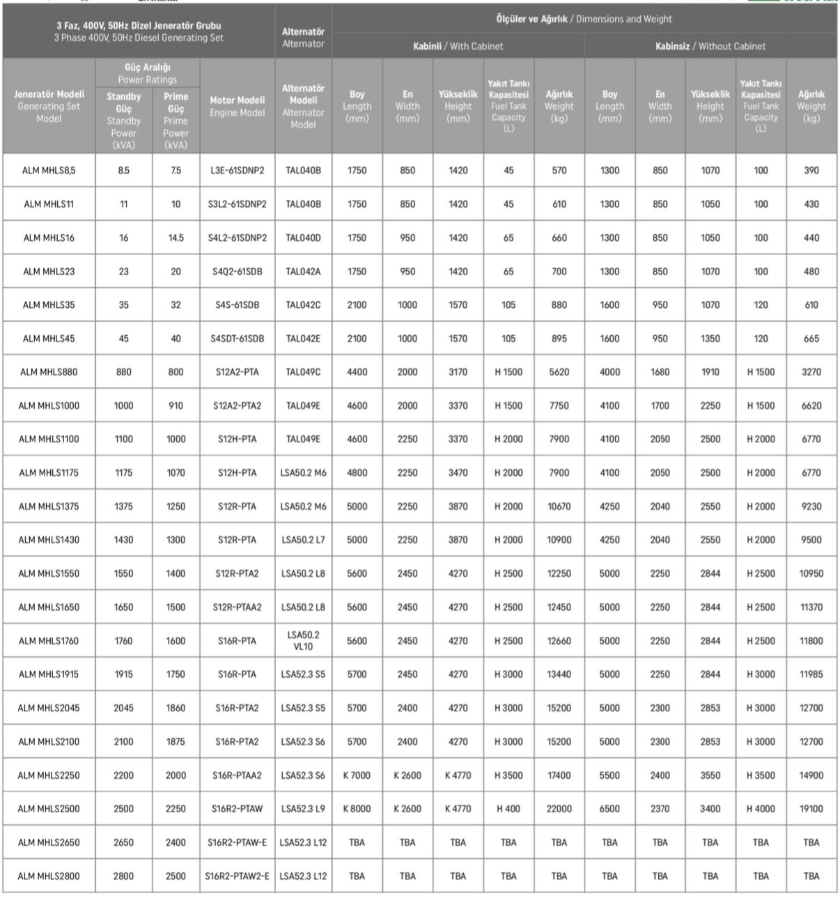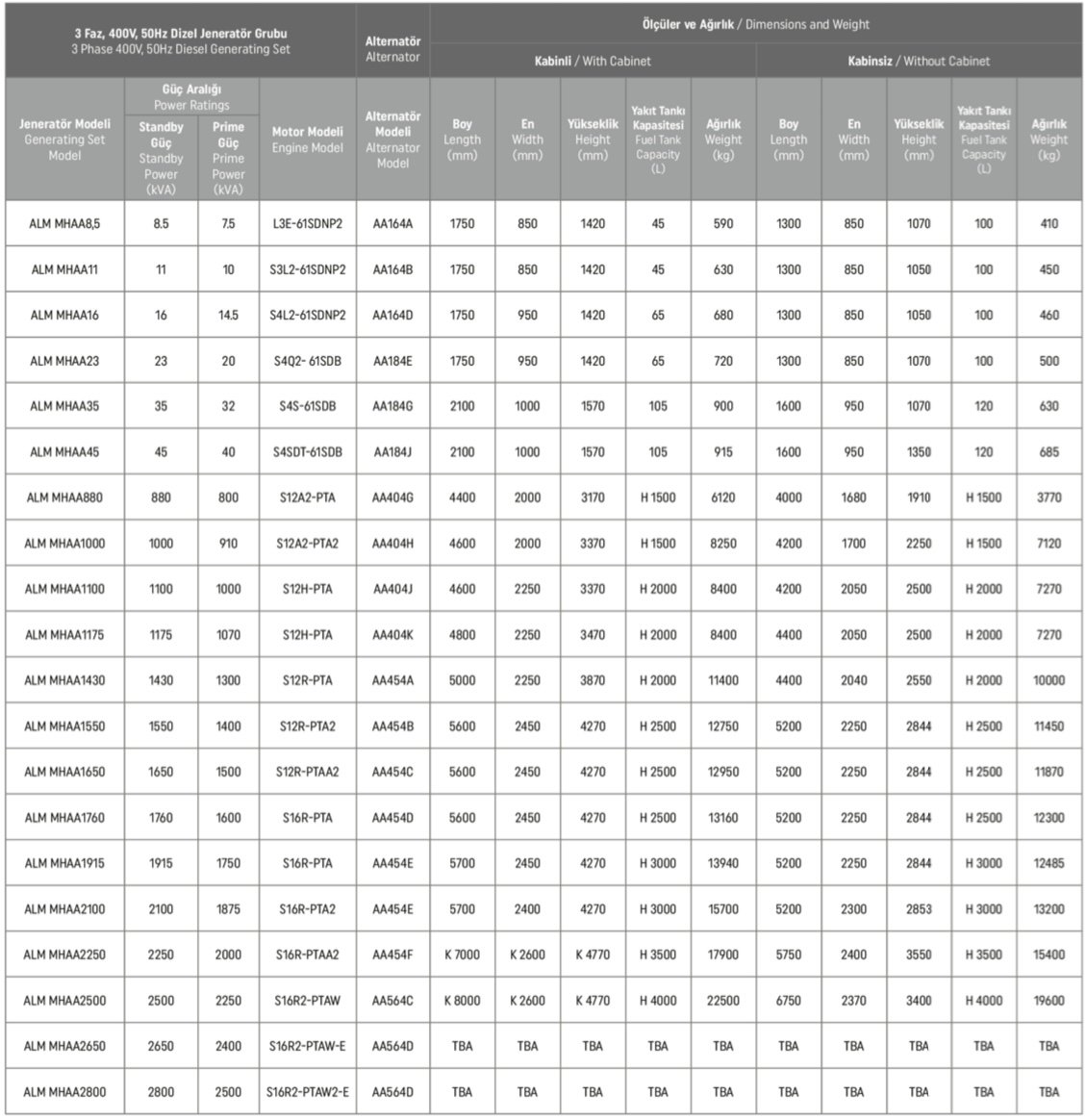 - MITSUBISHI brand, 4-stroke, water-cooled, 1500 rpm diesel engine